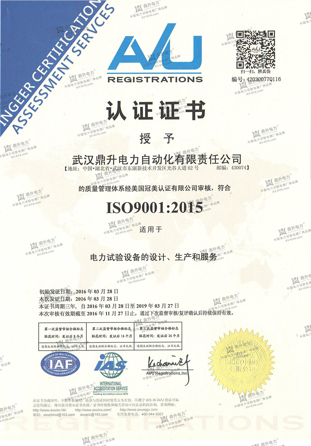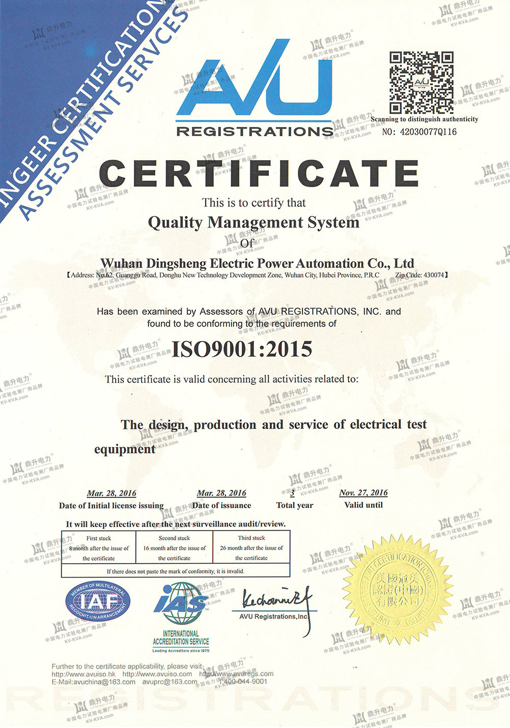 服務(wù)熱線:400-6698-612我們運(yùn)用ISO質(zhì)量管理模式來(lái)計(jì)劃工作,藉以持續(xù)、嚴(yán)謹(jǐn)及積極地推行全員質(zhì)量管理;并根據(jù)ISO9001國(guó)際質(zhì)量標(biāo)準(zhǔn)體系建立了一整套完善、適用而有效的管理程序和工作體系,針對(duì)可能影響產(chǎn)品及工作質(zhì)量的所有環(huán)節(jié),進(jìn)行嚴(yán)格而有效的監(jiān)控。鼎升電力于2005年榮獲英國(guó)勞氏質(zhì)量認(rèn)證機(jī)構(gòu)頒發(fā)的ISO9001品質(zhì)檢定證書(shū),2016年榮獲美國(guó)冠美質(zhì)量認(rèn)證頒發(fā)的ISO9001:2015新標(biāo)準(zhǔn),成為中國(guó)業(yè)內(nèi)獲得此項(xiàng)權(quán)威優(yōu)質(zhì)認(rèn)證的測(cè)試儀表制造商。